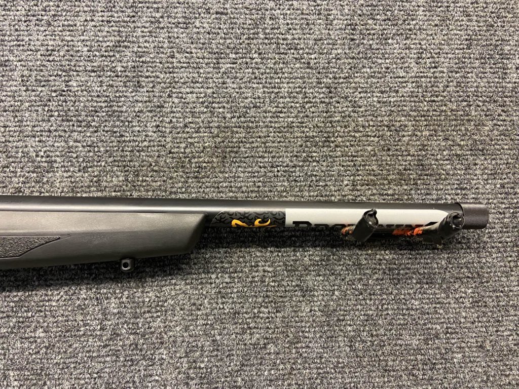 - BARREL – 16 1/4″ Sporter; Blued finish; Free-floating